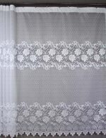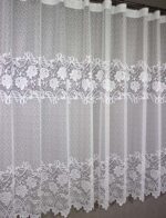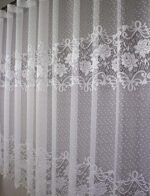 Hustá a přitom výrazná záclona která má pruhovaný květovaný vzor. Střední a spodní část lemuje vzor kvetu ,spletený s růže renesance. Tato záclona zpříjemní Váš interiér a dodá Vám příjemný pocit. Záclona vhodná spíš pro širší tipy oken.