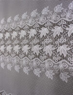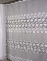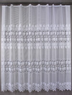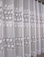 Hustá a přitom jemná záclona která má pruhovaný romantický vzor. Střední a spodní část lemuje vzor pavučinky ,spletený podle vzoru listí vinné révy. Tato záclona zpříjemní Váš interiér a dodá Vám příjemný pocit. Záclona vhodná spíš pro širší tipy oken.
