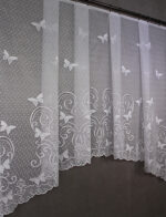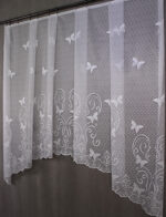 Krásná Oblouková Záclona s Bílým Vzorem Motýlků.
