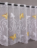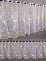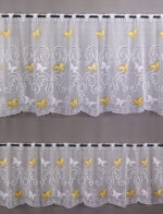 Tato záclona ve výšce 60 cm a 90 cm má v horní části zakončení na dírky pro pohodlné navlečení. Ideální na vitrážkovou tyč.