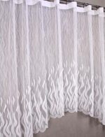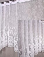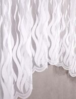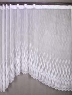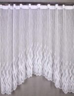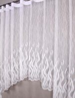 Bíla luxusní oblouková žakárová záclona s celoplošným vzorem, který je ve spodní části bohatší, poté se na horu zjemní a vytvoří decentní vzhled.
