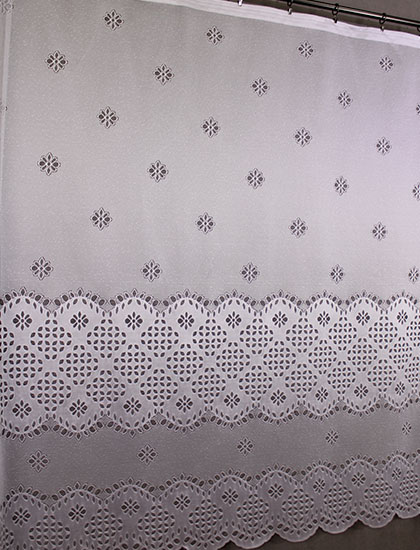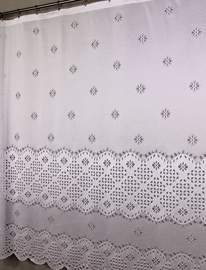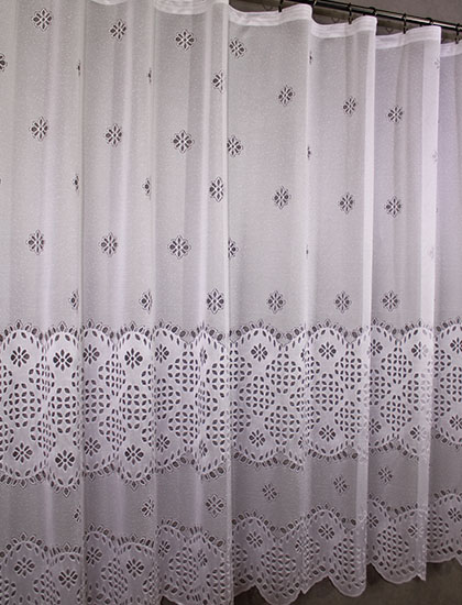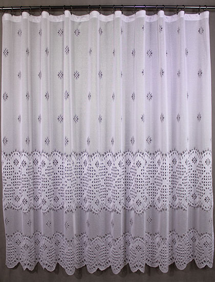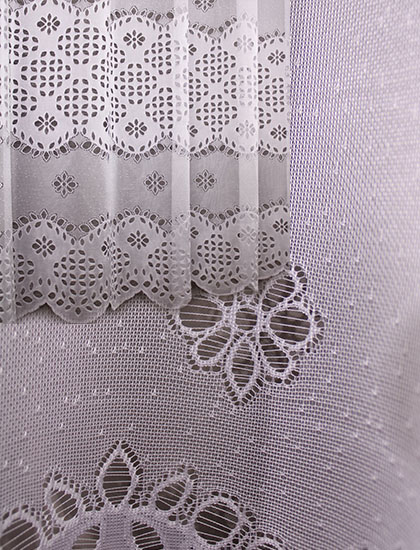 Záclona vyrobena na podkladu polohrubého žakáru.